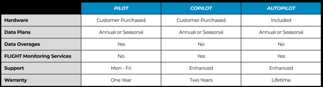 What plan best meets your needs? Pilot, CoPilot, and AutoPilot allow you to choose monitoring services, support levels, and more. AutoPilot customers includes modems.