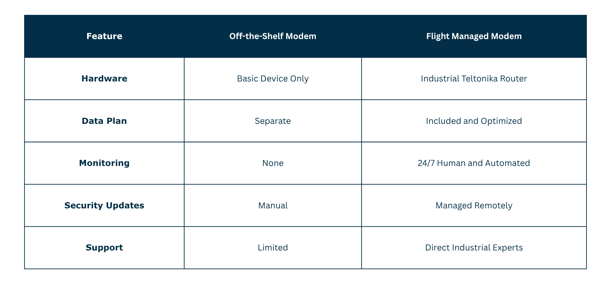 With Flight, you don’t just install a modem — you deploy a managed industrial network.